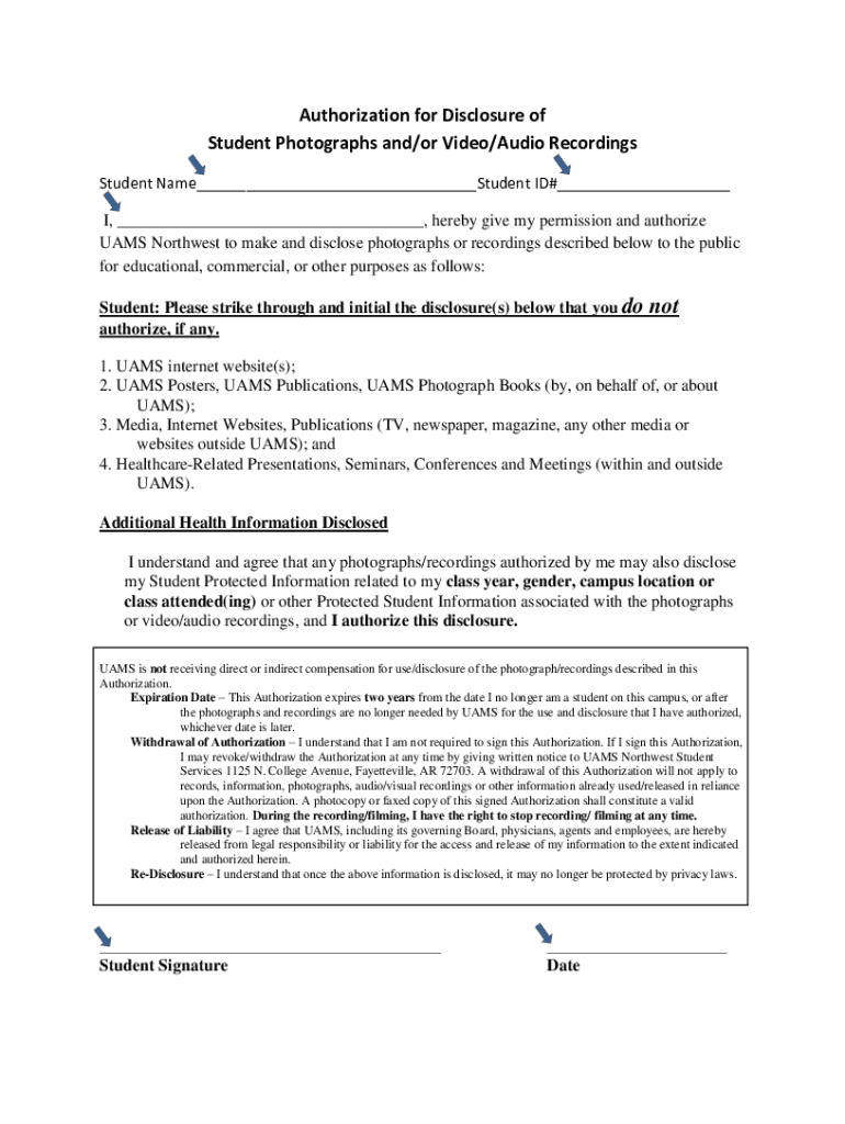 Authorization for Disclosure of Student Photographs and/or Video/Audio Recordings Student Name___Student ID#___ I, ___, hereby give my permission and authorize DAMS Northwest to make and disclose