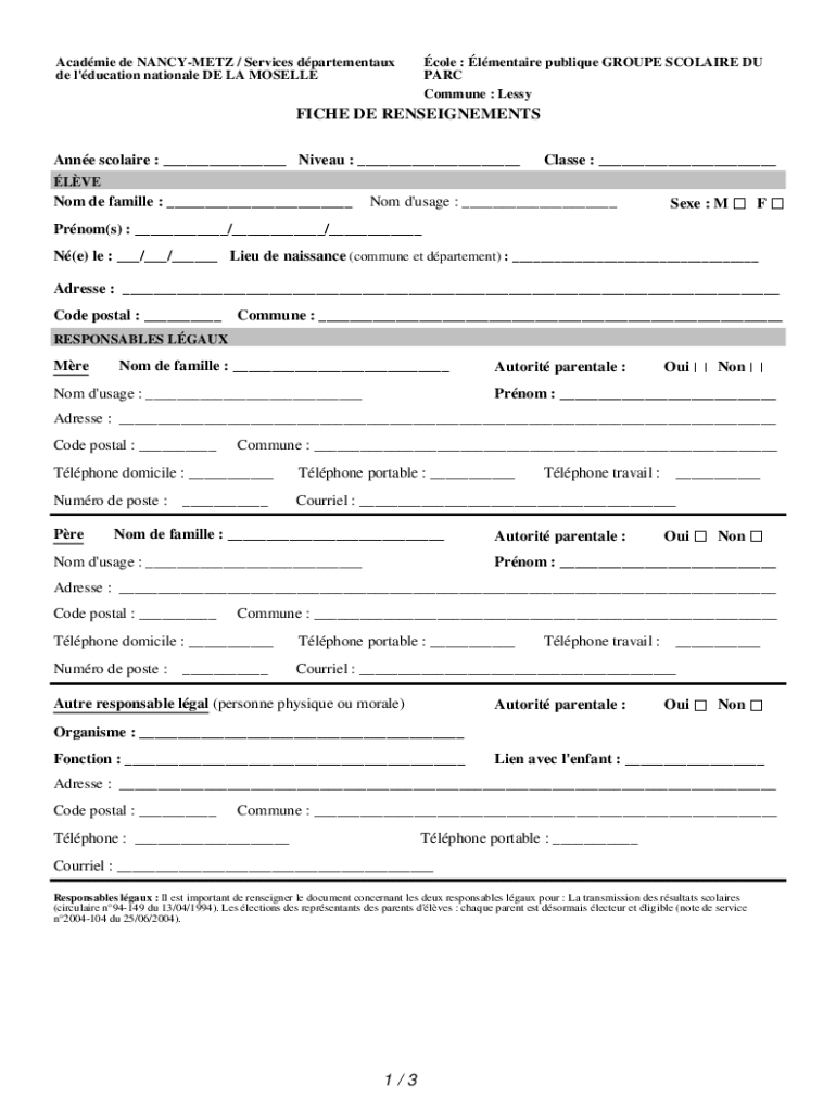 Obtenir le gratuit FICHE DE RENSEIGNEMENTSAC Nancy Metz - www4 ac-nancy-metz