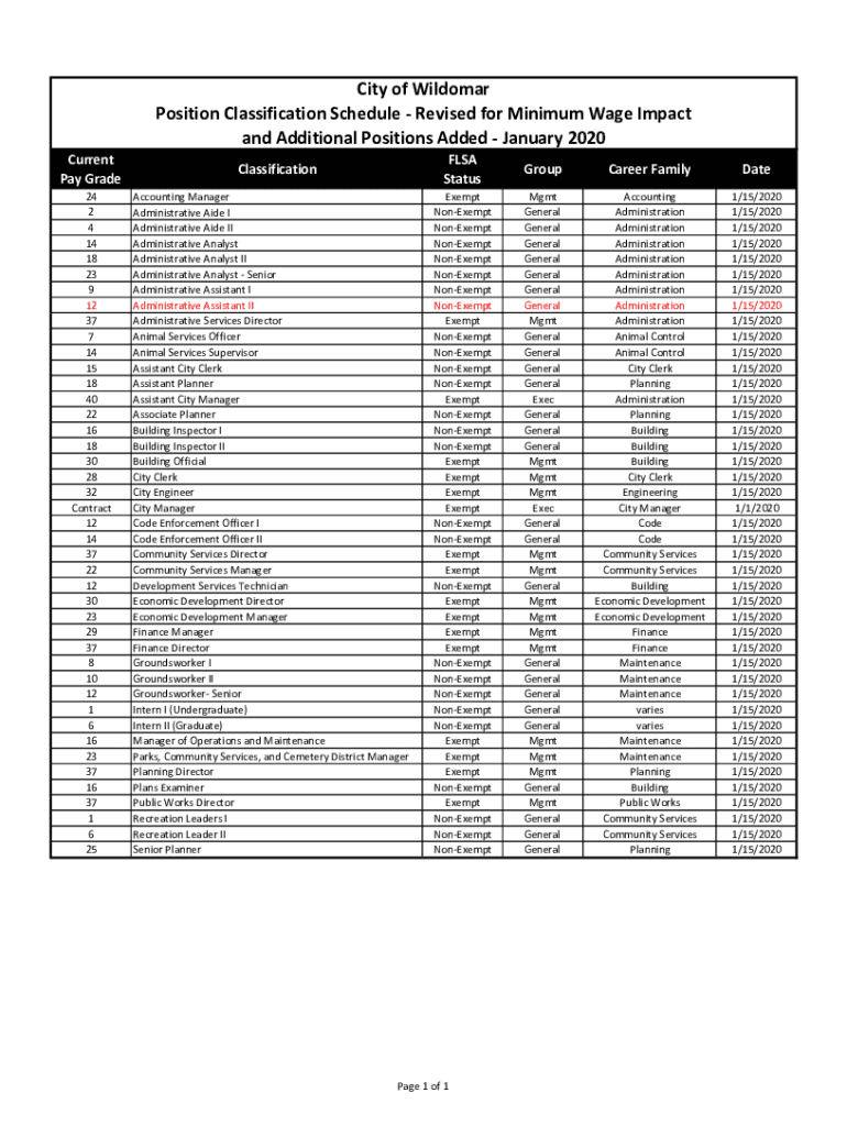 City of Waldemar Position Classification Schedule Revised for Minimum Wage Impact and Additional Positions Added January 2020 Current Pay Grade 24 2 4 14 18 23 9 12 37 7 14 15 18 40 22 16 18 30 28