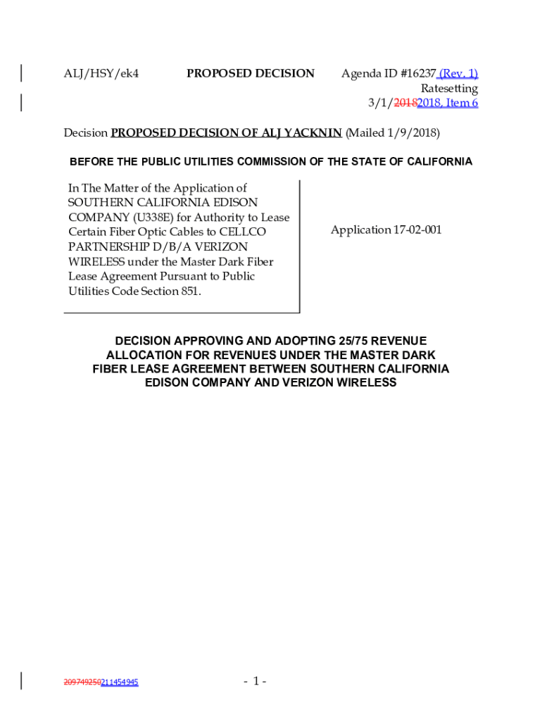 Get the free A1702001 Yacknin Comment Deck Approving and Adopting25-75 Revenue Allocation. . .Ver...