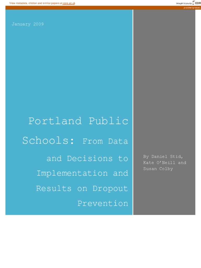 View metadata, citation and similar papers at core.ac.brought to you byCOREprovided by IssueLaJanuary 2009Portland Public Schools:From Data and Decisions to Implementation and Results on Dropout Prevention
