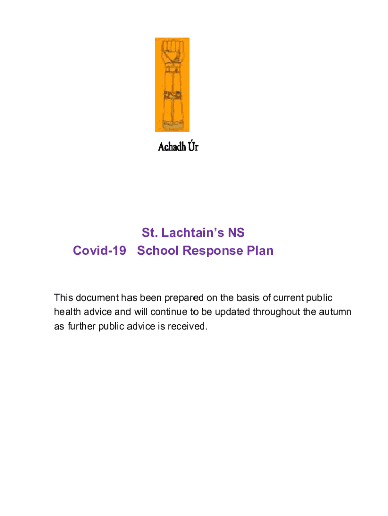 St. Keychains NS COVID-19 School Response Plan This document has been prepared on the basis of current public health advice and will continue to be updated throughout the autumn as further public