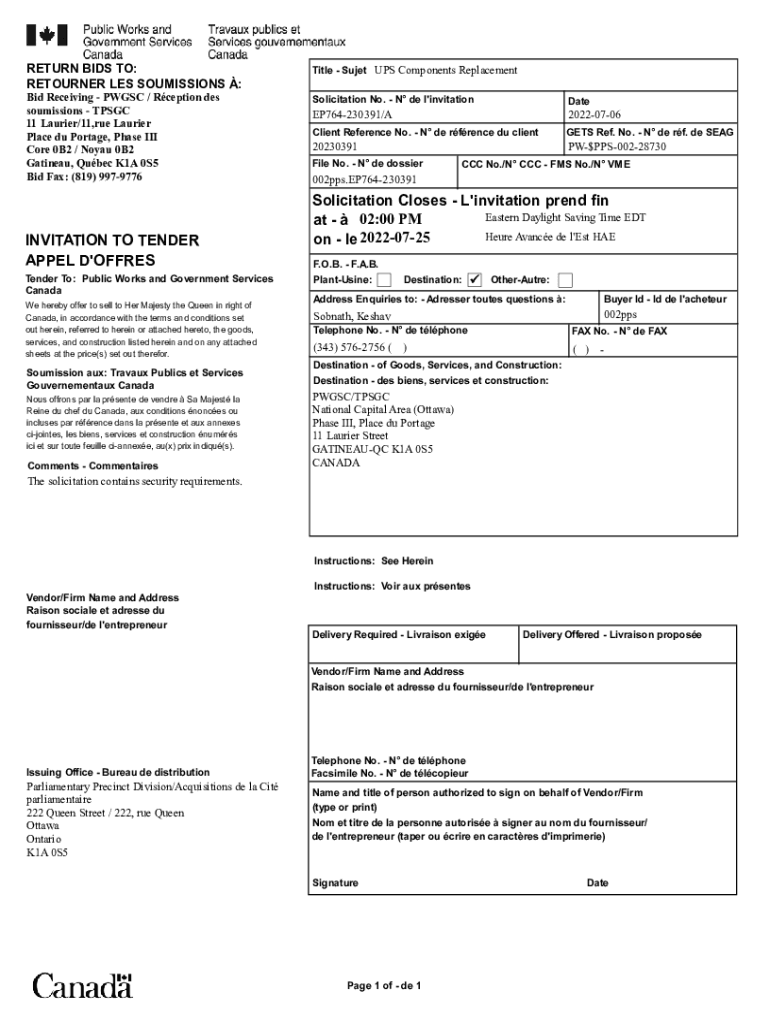 1 1RETURN BIDS TO: RETURNER LES COMMISSIONS : Bid Receiving PW GSC / Reception DES sou missions TP SGC 11 Laurie/11,rue Laurie Place du Portage, Phase III Core 0B2 / Royal 0B2 Gatineau, Quebec K1A
