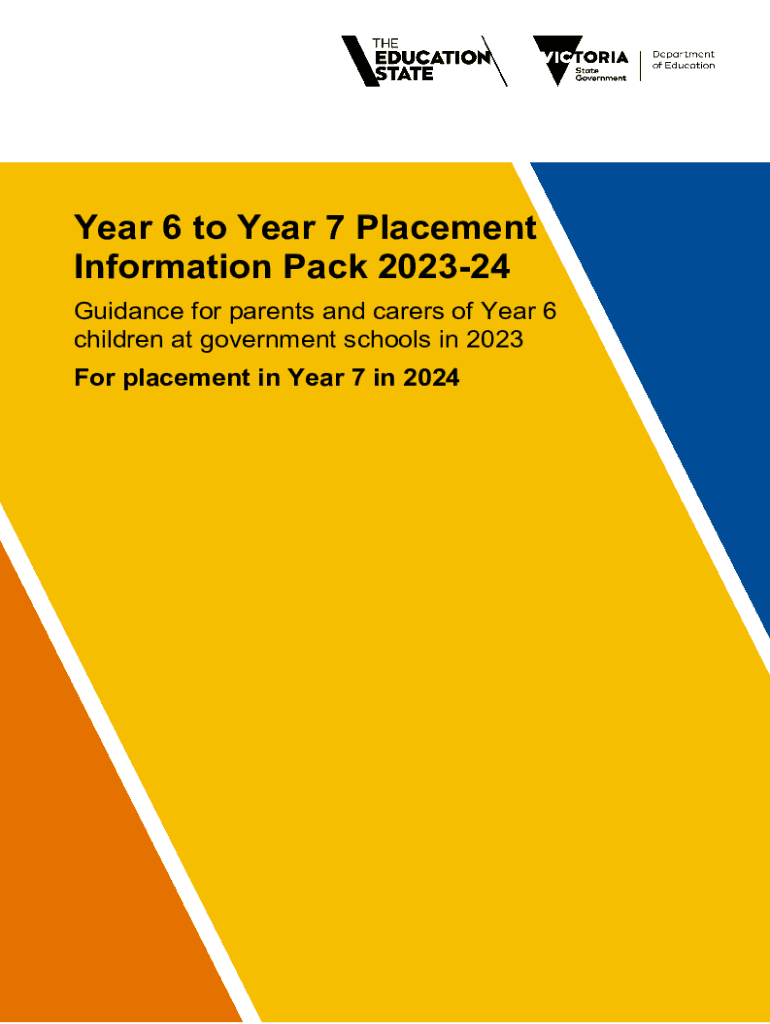 Year 6 to Year 7 Placement Information Pack 202324 Guidance for parents and carers of Year 6 children at government schools in 2023 For placement in Year 7 in 2024Contents From the Department of Education