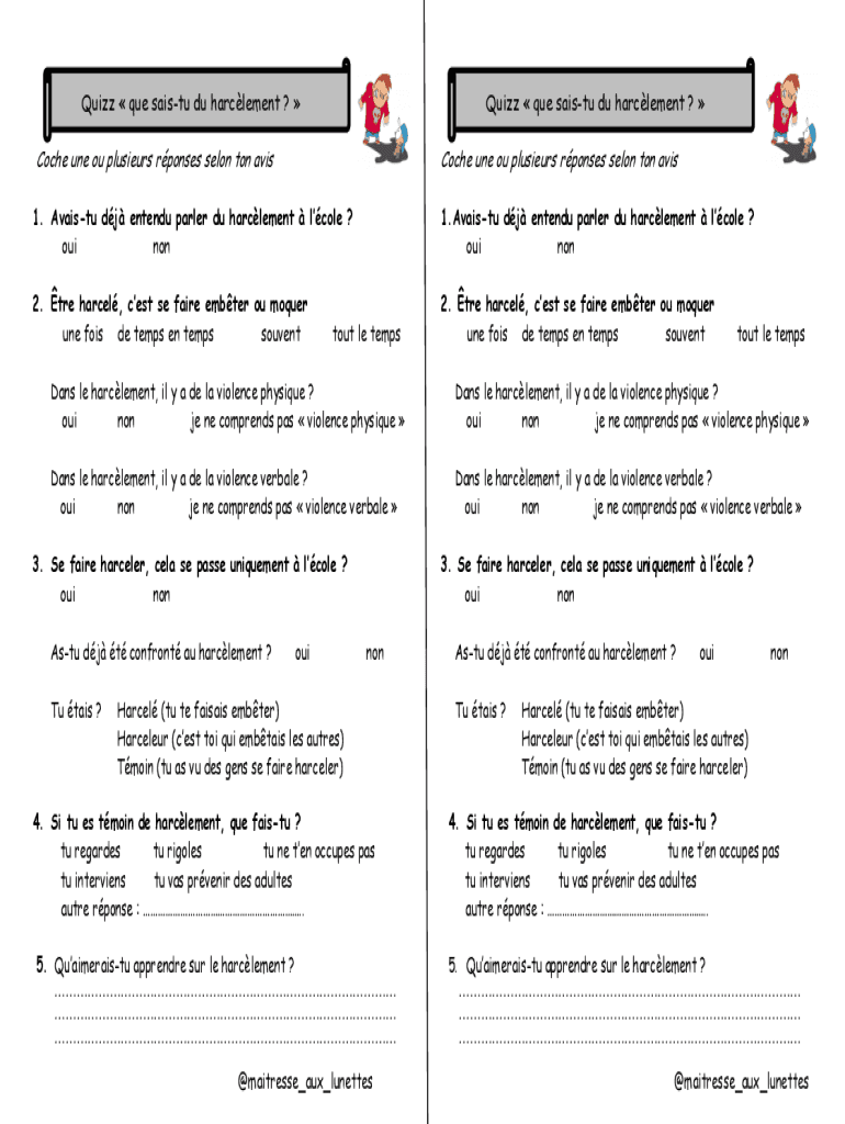 Obtenir le gratuit Quizz que sais-tu du harclement