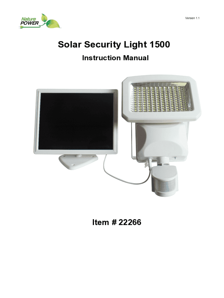 Get the free Nature Power 22266 Solar Security Light 1500 Owner's Manual