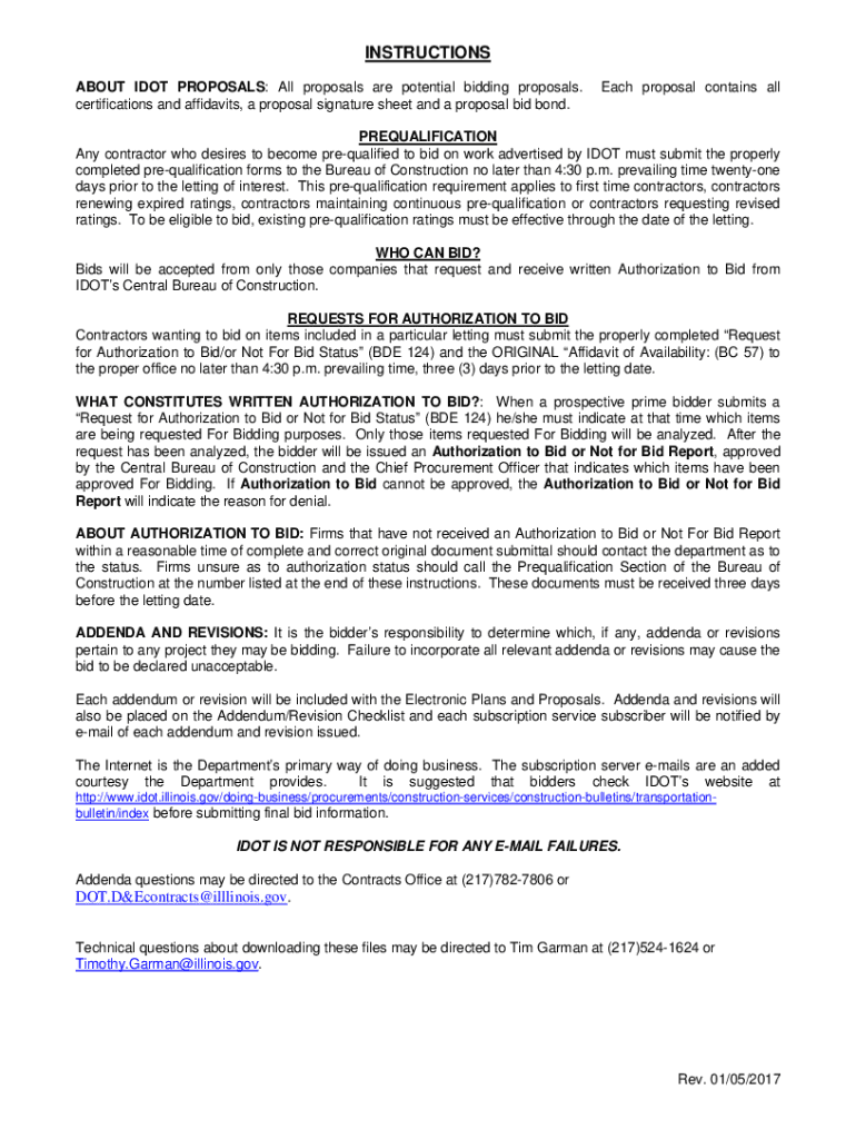 INSTRUCTIONS ABOUT DOT PROPOSALS: All proposals are potential bidding proposals. Certifications and affidavits, a proposal signature sheet and a proposal bid bond. Each proposal contains prequalification