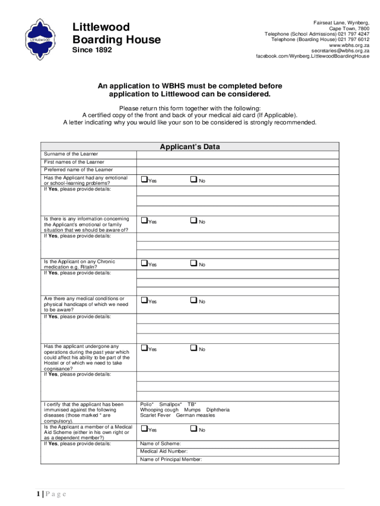 Fair seat Lane, Weinberg, Cape Town, 7800 Telephone (School Admissions) 021 797 4247 Telephone (Boarding House) 021 797 6012 www.wbhs.org.za secretaries@wbhs.org.za facebook.com/Wynberg. LittlewoodBoardingHouseLittlewood