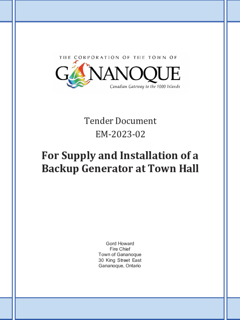 Get the free Supply and Installation of a Backup Generator at Town Hall
