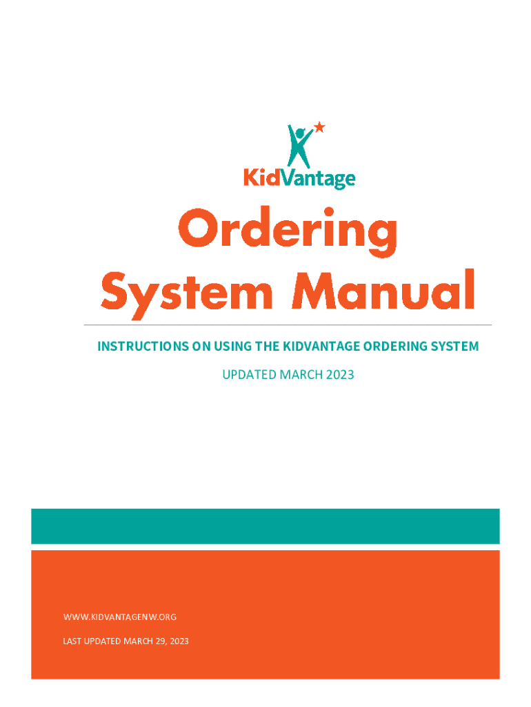 Get the free Ordering System Manual. Instructions on using the KidVantage ordering system