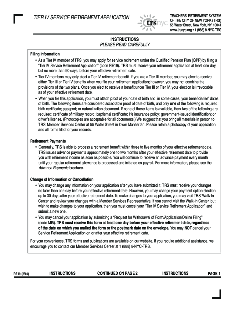 TierlVServiceRetirementApplication(codeRE19).TRSmustreceiveyourretirementapplicationatleastoneday,