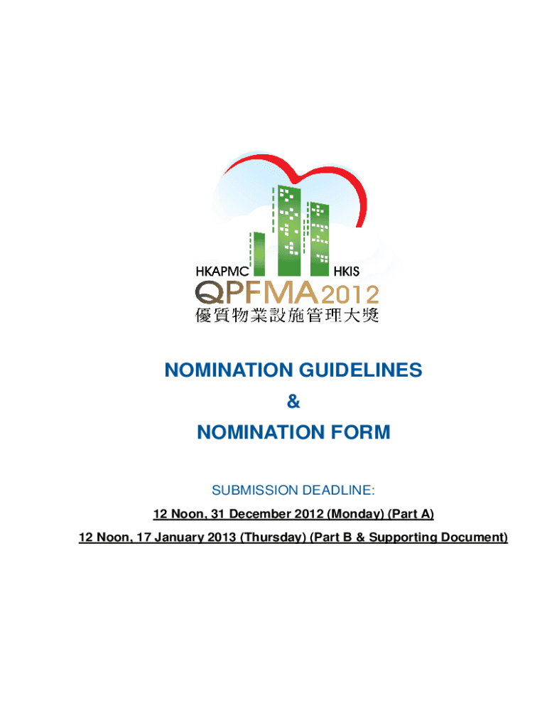 NOMINATION GUIDELINES & NOMINATION FORM SUBMISSION DEADLINE: 12 Noon, 31 December 2012 (Monday) (Part A) 12 Noon, 17 January 2013 (Thursday) (Part B & Supporting Document)Nomination Guidelines and