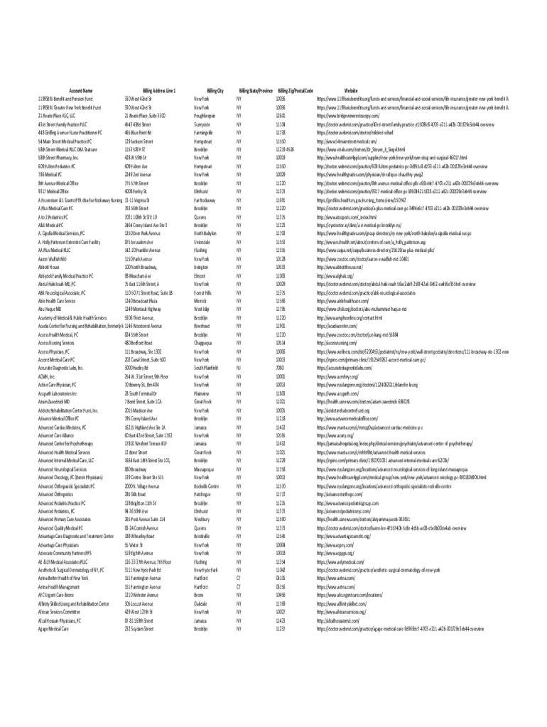 Account Name Billing Address Line 1 1199SEIU Benefit and Pension Fund 330 West 42nd St 1199SEIU Greater New York Benefit Fund 330 West 42nd St 21 Read Place ASC, LLC 21 Read Place, Suite 3300 43rd