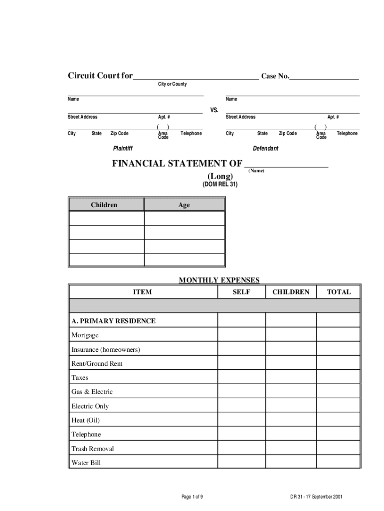 CodeTelephoneDefendantFINANCIAL STATEMENT