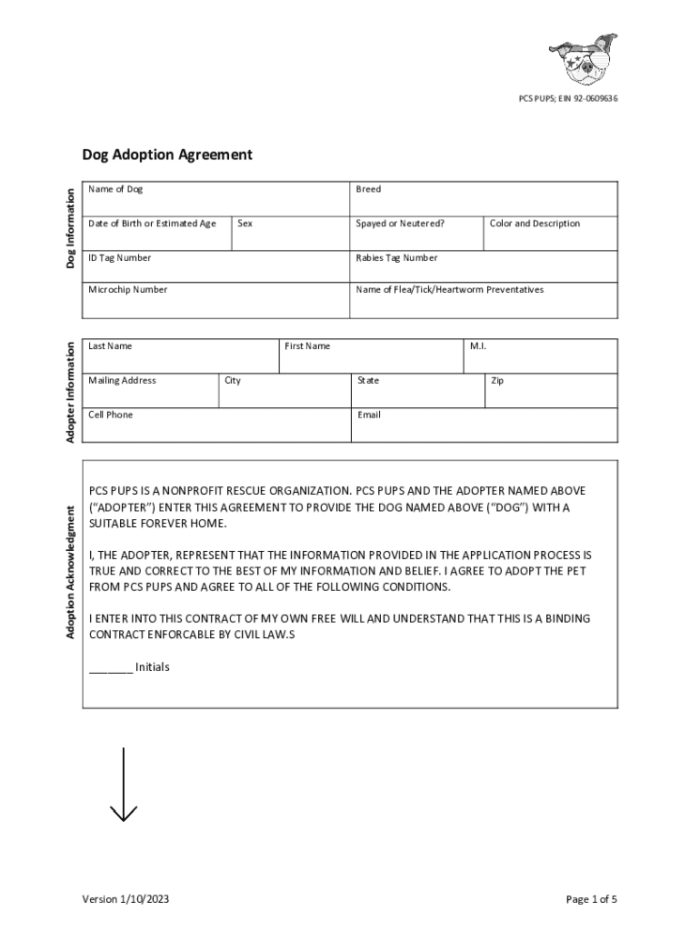 PCS PUPS; EIN 920609636Adoption AcknowledgmentAdopter Information Adoption Agreement