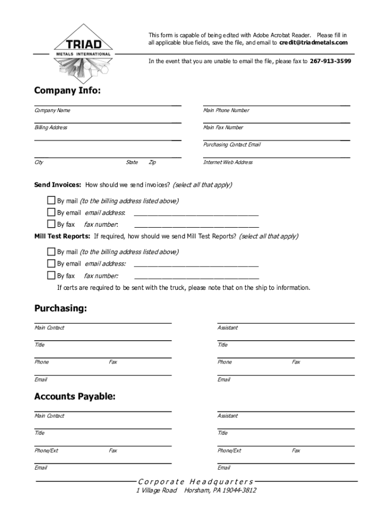 all applicable blue fields, save the file, and email to credit@triadmetals.com