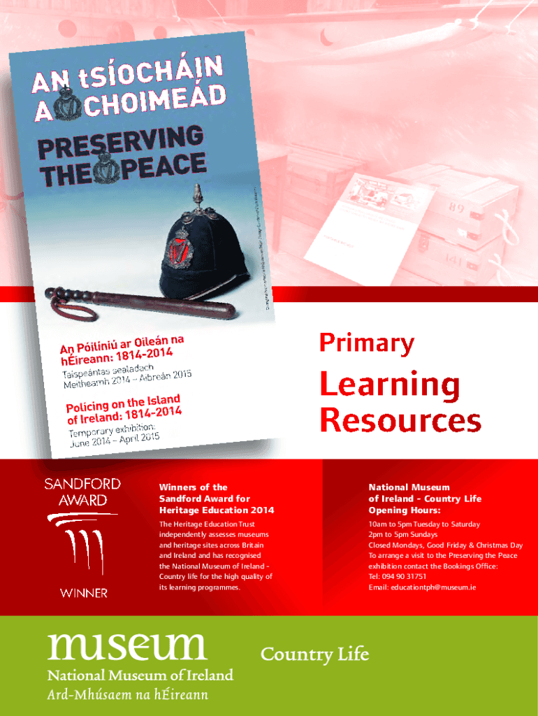 PrimaryLearning Resources Winners of the Sandford Award for Heritage Education 2014National Museum of Ireland Country Life Opening Hours:The Heritage Education Trust independently assesses museums
