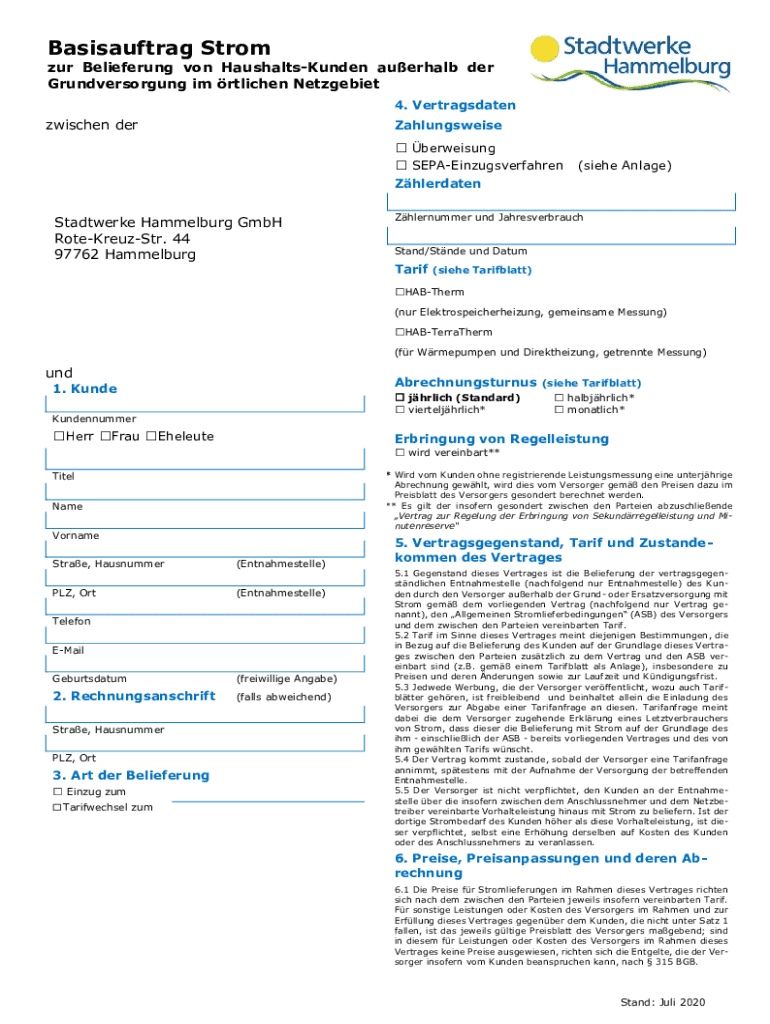 So füllen Sie zur belieferung von haushalts-kunden aus
