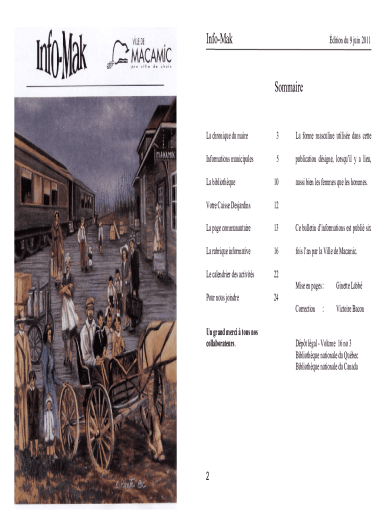 La chronicle Du maire3La form masculine utilize days cetteInformations municipales5publication design, jonquil y a lieu, La bibliothque10Votre Case Desjardins12La