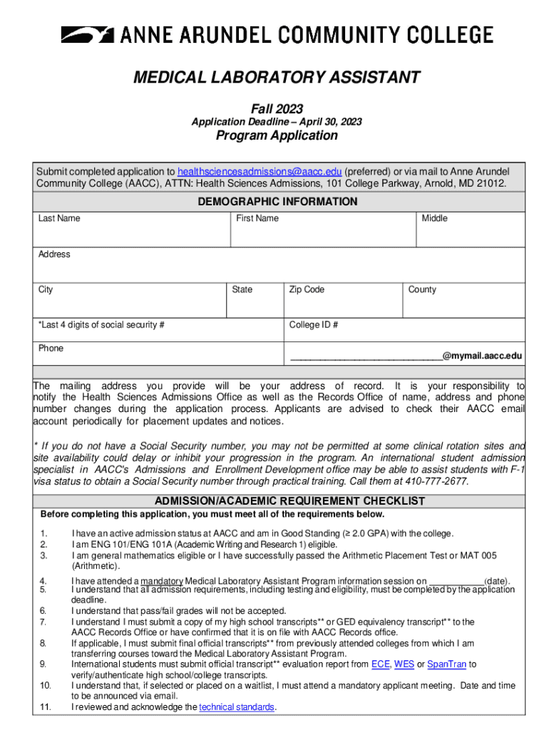 Submit completed application to healthsciencesadmissions@aacc.edu (preferred) or via mail to Anne Roundel