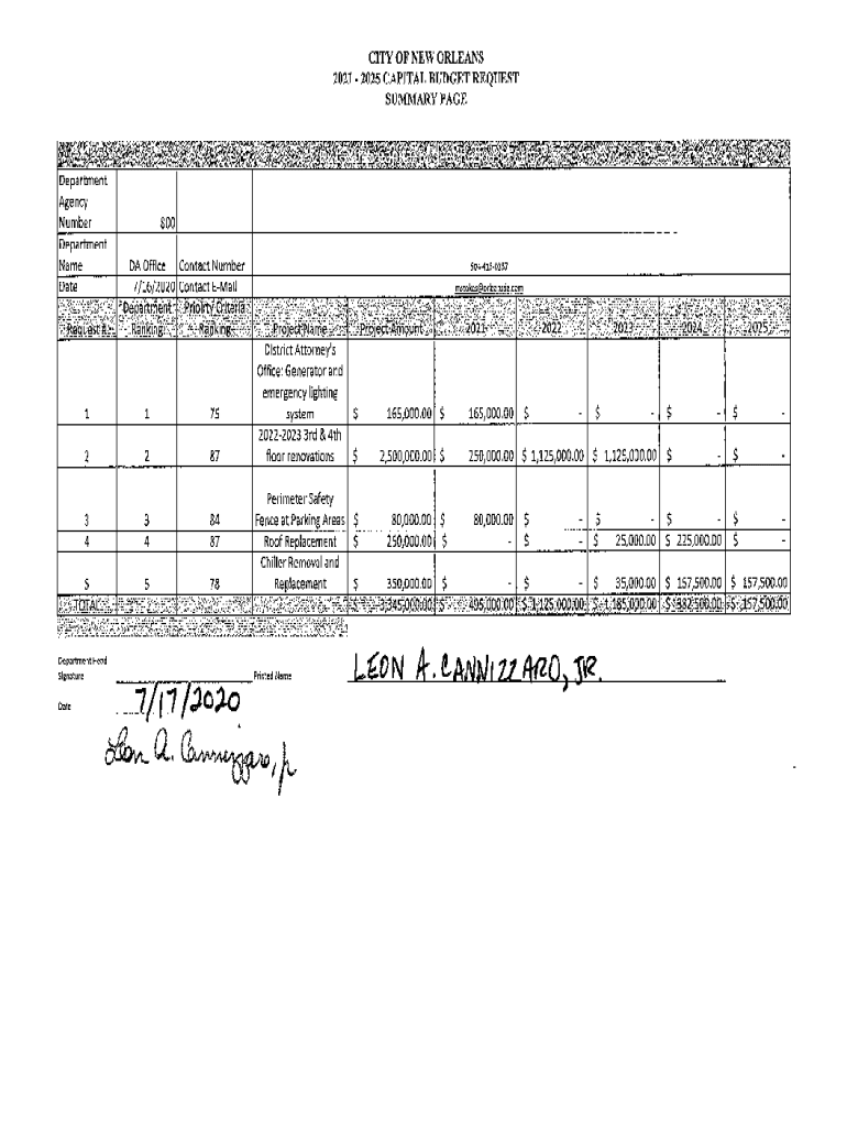 2021 2025 Capital Budget Request Form