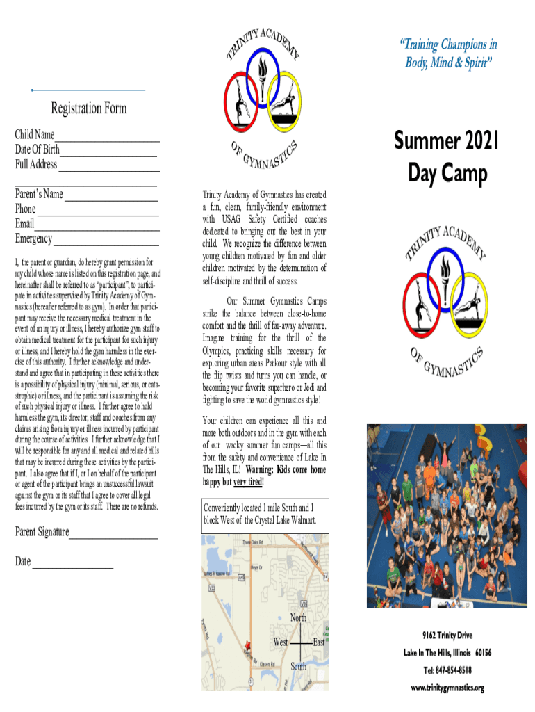 Training Champions in Body, Mind & SpiritRegistration Form Child Name___ Date Of Birth___ Full Address ___ ___ Parents Name ___ Phone ___ Email___ Emergency ___ I, the parent or guardian, do hereby