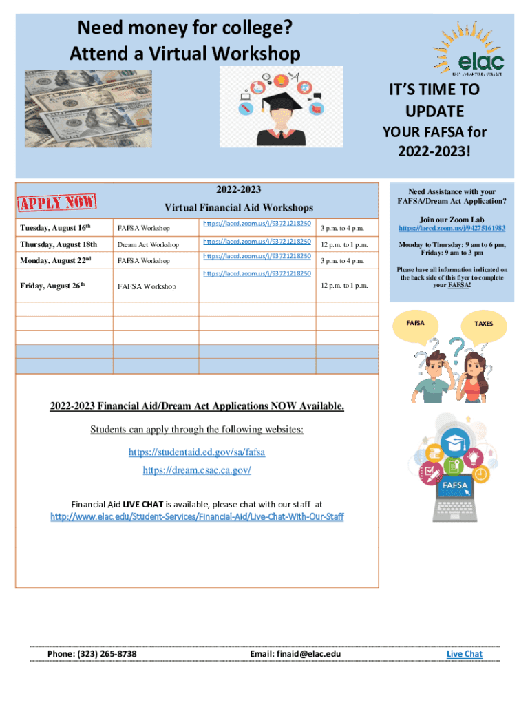 FAFSA/Dream Act Application? Virtual Financial Aid Workshops