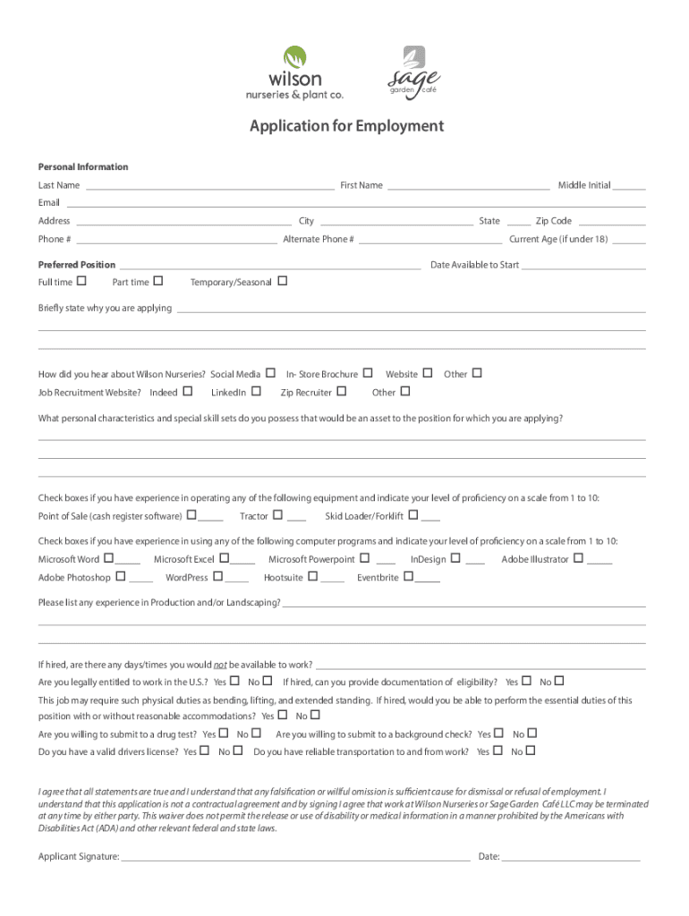 GardencafApplication for Employment Personal Information Last Name___First Name___Middle Initial ___ Email___ Address___City___State___Zip Code___Phone #___Alternate Phone #___Current Age (if under