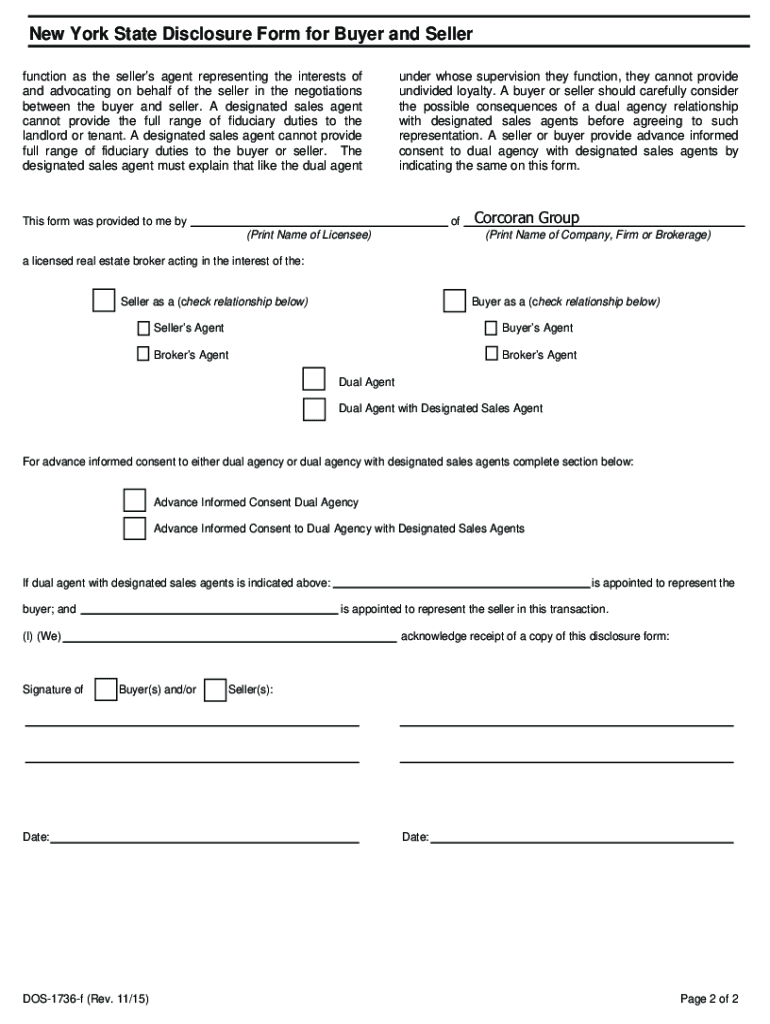 New York State Department of State Division of Licensing Services P.O. Box 22001 Albany, NY 122012001 Customer Service: (518) 4744429 www.dos.ny.govNew York State Disclosure Form for Buyer and Seller