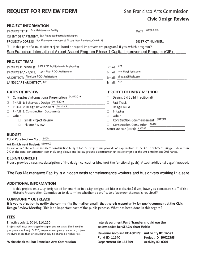REQUEST FOR REVIEW Formosan Francisco Arts Commission Civic Design ReviewPROJECT INFORMATION Bus Maintenance Facility 07/02/2019 PROJECT TITLE: ___ DATE: ___ San Francisco International Airport CLIENT