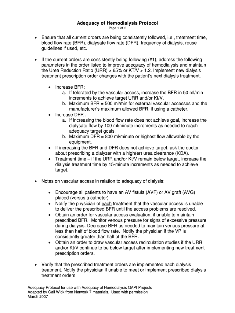Get the free Adequacy of Hemodialysis Protocol - PEAK Performance