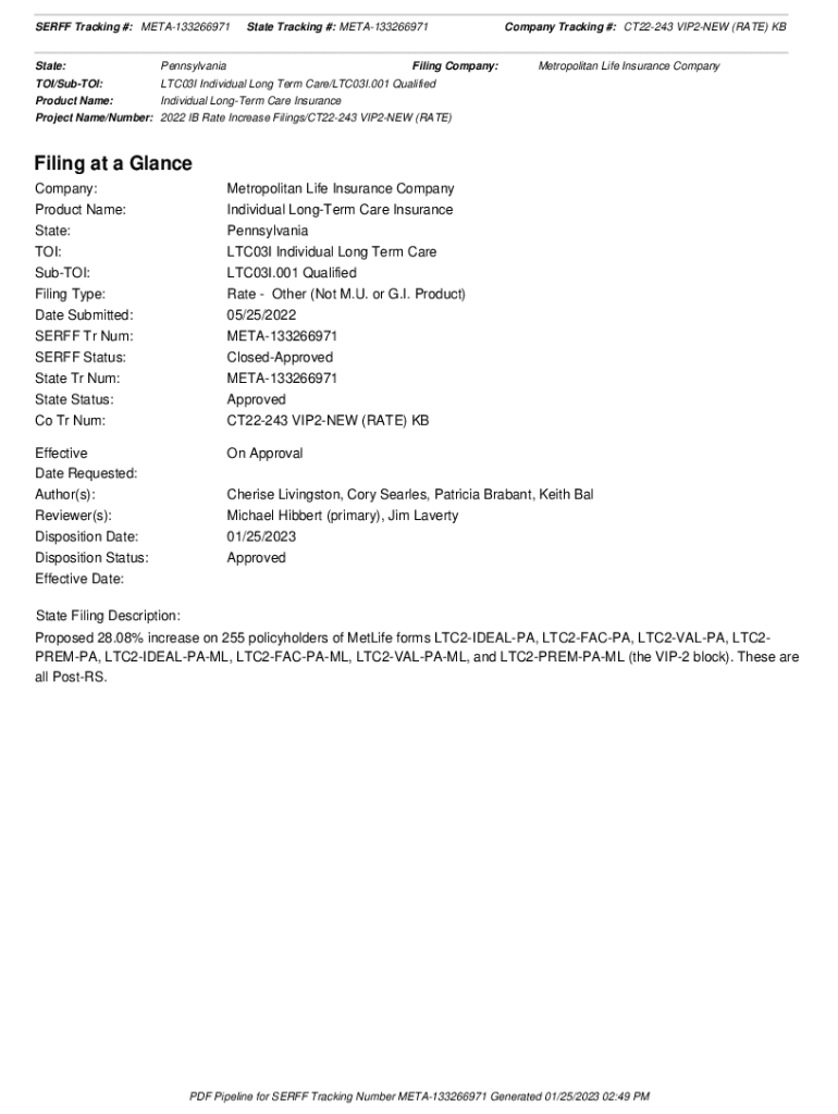 SERFS Tracking #: META133266971State Tracking #: META133266971State:Pennsylvania/Subtle:LTC03I Individual Long Term Care/LTC03I.001 QualifiedFiling Company:Product Name:Individual Longer Care InsuranceCompany
