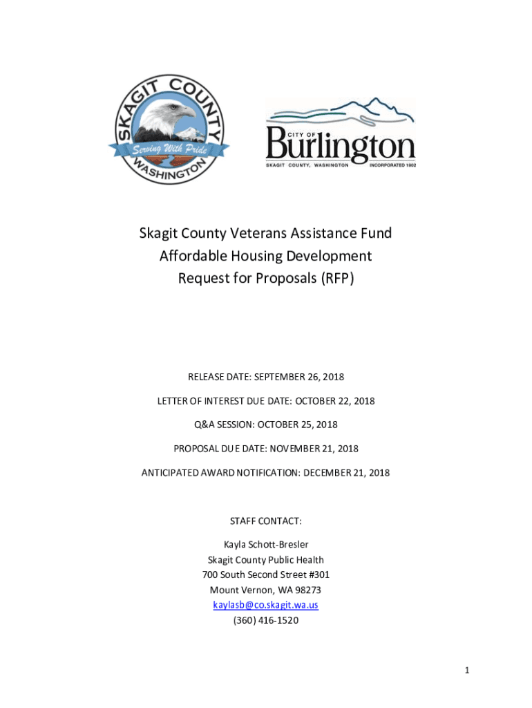 Skagit County Veterans Assistance Fund Affordable Housing Development Request for Proposals (RFP)RELEASE DATE: SEPTEMBER 26, 2018, LETTER OF INTEREST DUE DATE: OCTOBER 22, 2018 Q&A SESSION: OCTOBER