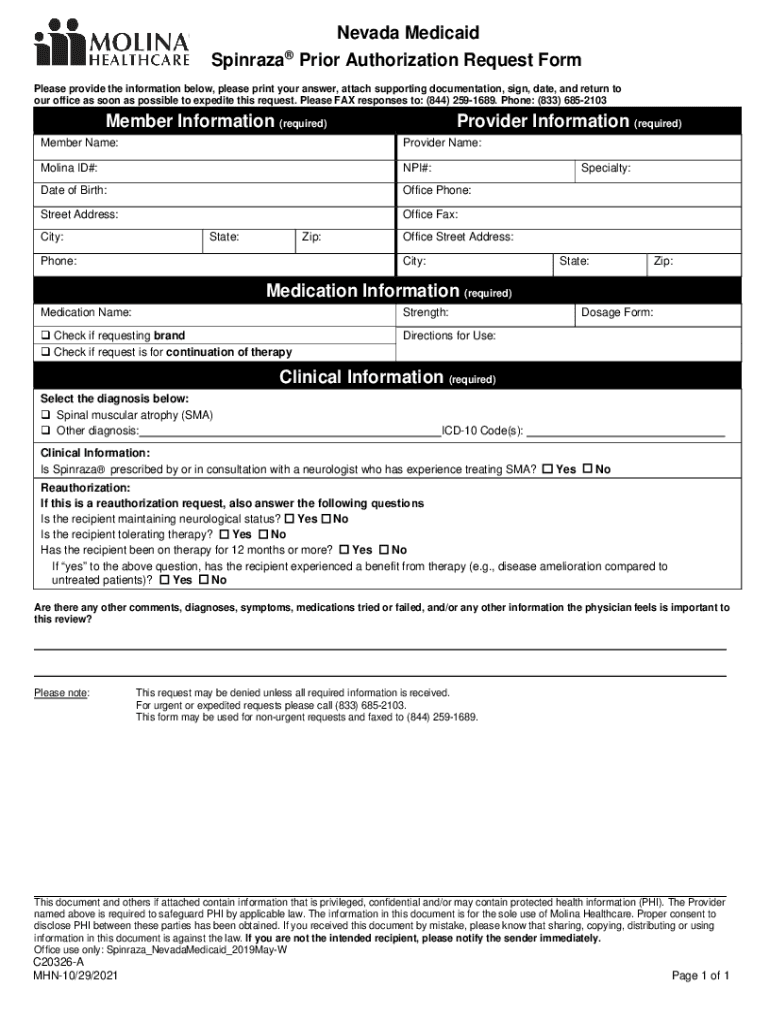 Nevada Medicaid Spinoza Prior Authorization Request Form Please provide the information below, please print your answer, attach supporting documentation, sign, date, and return to our office as soon