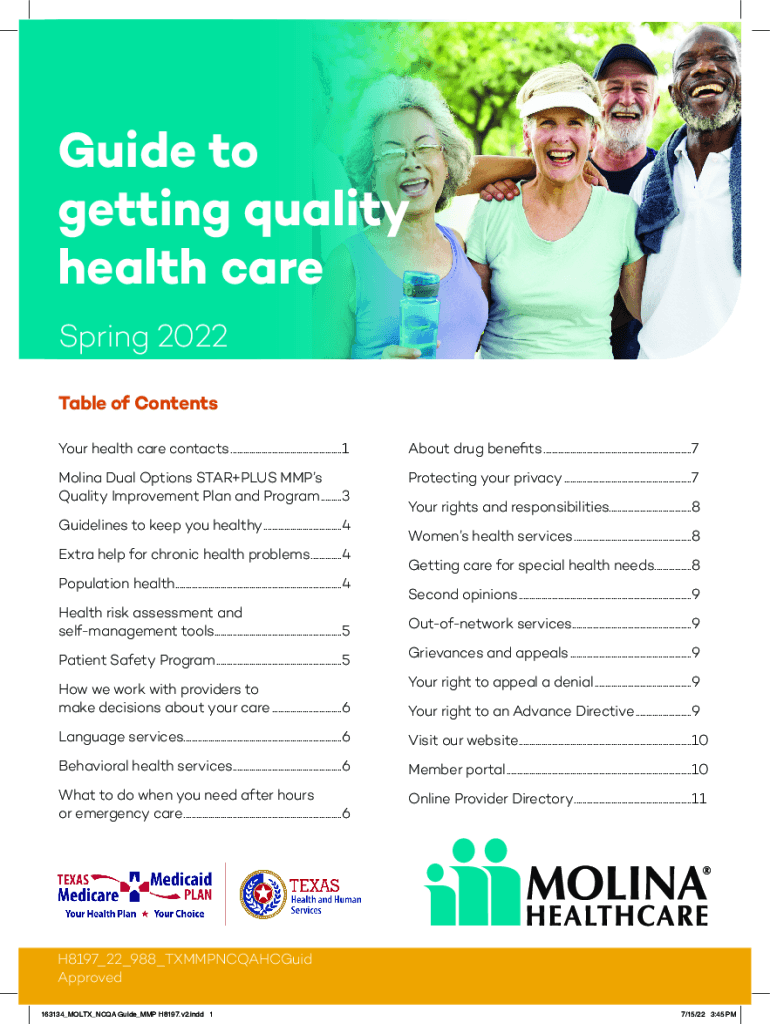 Guide to getting quality health care Spring 2022 Table of Contents Your health care contacts.......................................................1About drug benefits.........................................................................7Molina