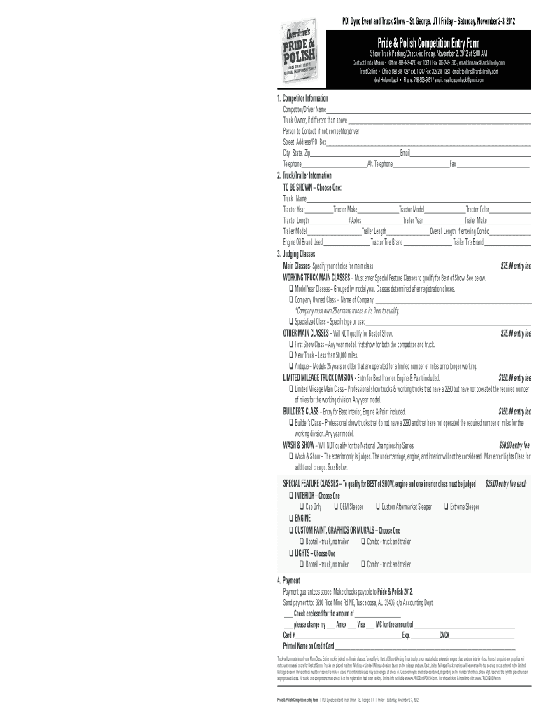 PDI Dino Event and Truck Show St. George, UT Friday Saturday, November 2-3, 2012 MAIN CLASSES Trucks choose ONE main class The Working Truck Division. . . . . . . Entry Fee $75.00 Working Trucks are