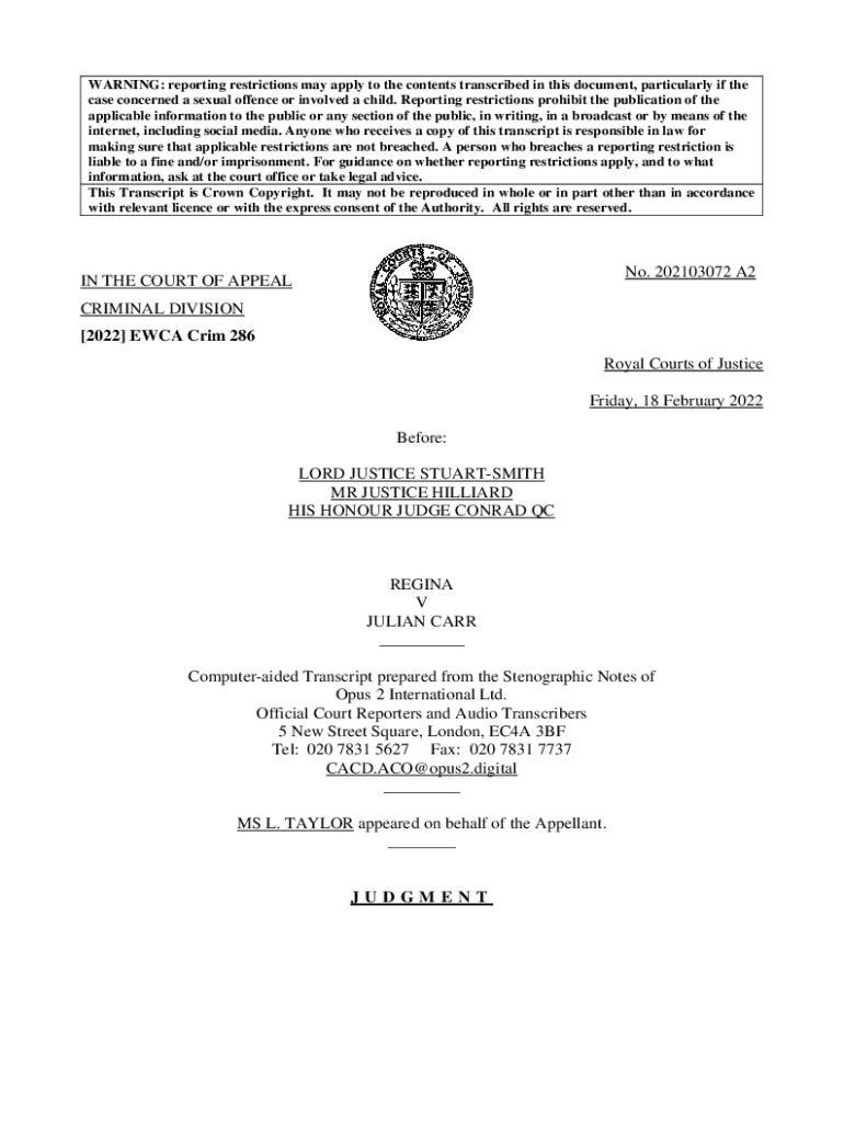 WARNING: reporting restrictions may apply to the contents transcribed in this document, particularly if the case concerned a sexual offense or involved a child. Reporting restrictions prohibit the