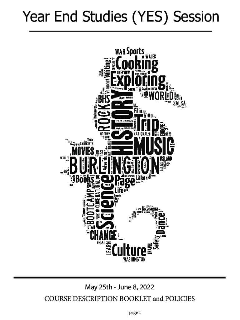 Year End Studies (YES) Session May 25th June 8, 2022, COURSE DESCRIPTION BOOKLET and POLICIES page 1Burlington High School Year End Studies (YES) Session Table of Contents Overview and Policies ...................................................................................