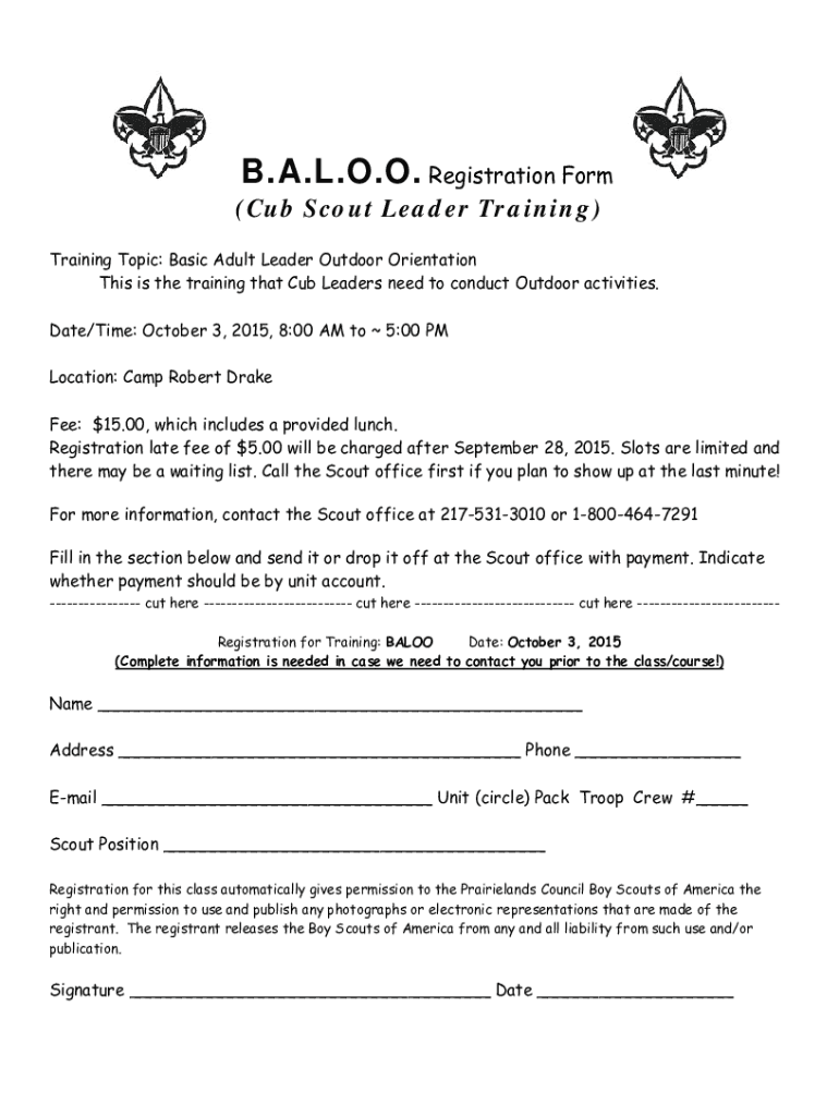 Get the free BALOO Registration Form (Cub Scout Leader Training)