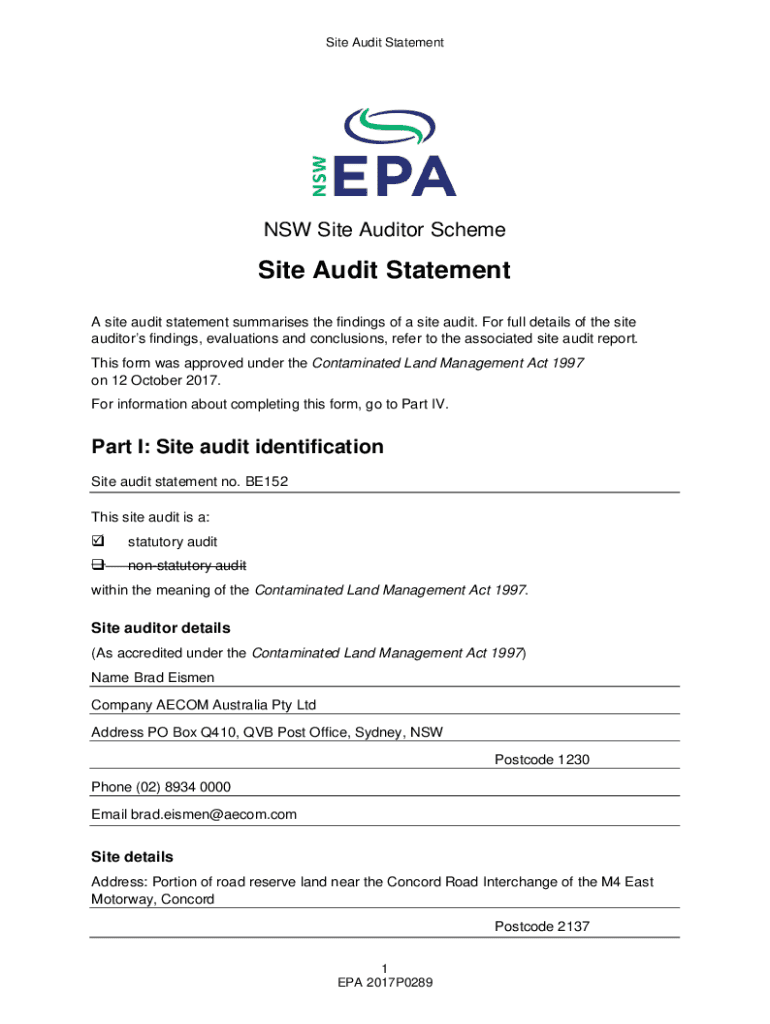 Get the free NSW Site Auditor Scheme SITE AUDIT STATEMENT