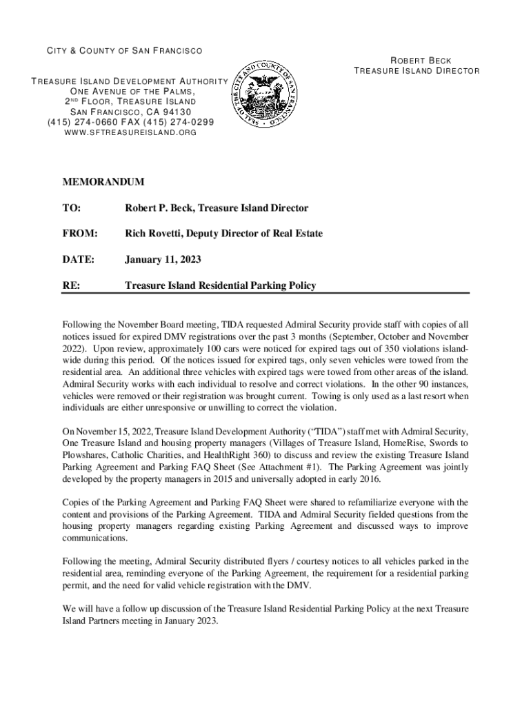 TREASURE ISLAND DEVELOPMENT AUTHORITY