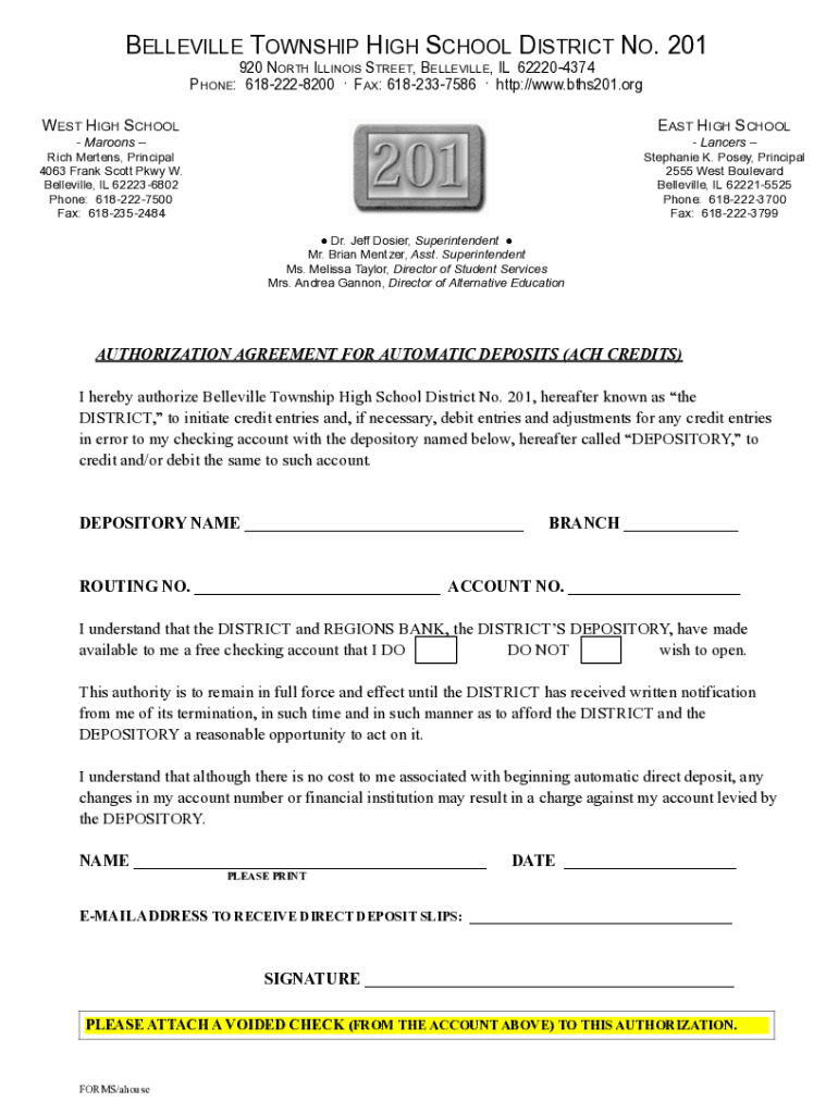 Students who attend Belleville Township High School are required to file various forms and documents.