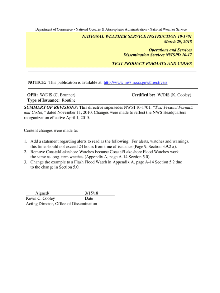 Department of Commerce National Oceanic & Atmospheric Administration National Weather ServiceNATIONAL WEATHER SERVICE INSTRUCTION 101701 March 29, 2018, Operations and Services Dissemination Services