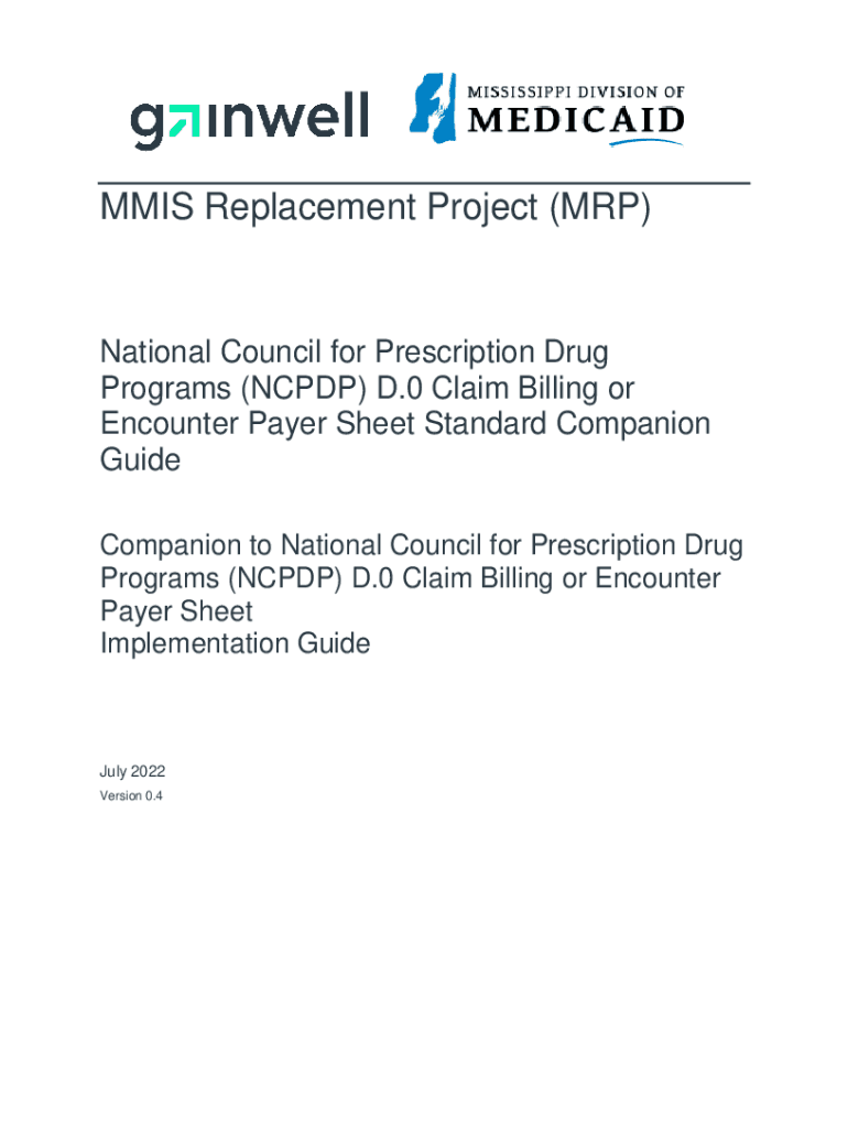 MMS Replacement Project (MRP)National Council for Prescription Drug Programs (CPDP) D.0 Claim Billing or Encounter Payer Sheet Standard Companion Guide Companion to National Council for Prescription