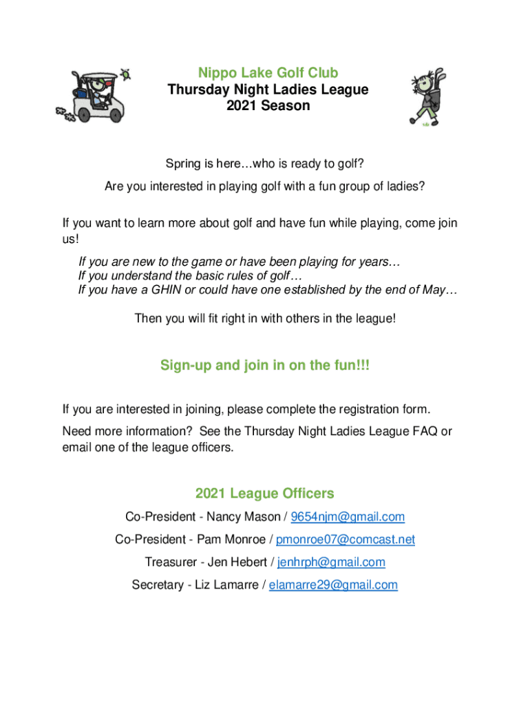 Nippon Lake Golf Club Thursday Night Ladies League 2021 Seasoning is here who is ready to golf? Are you interested in playing golf with a fun group of ladies? If you want to learn more about golf