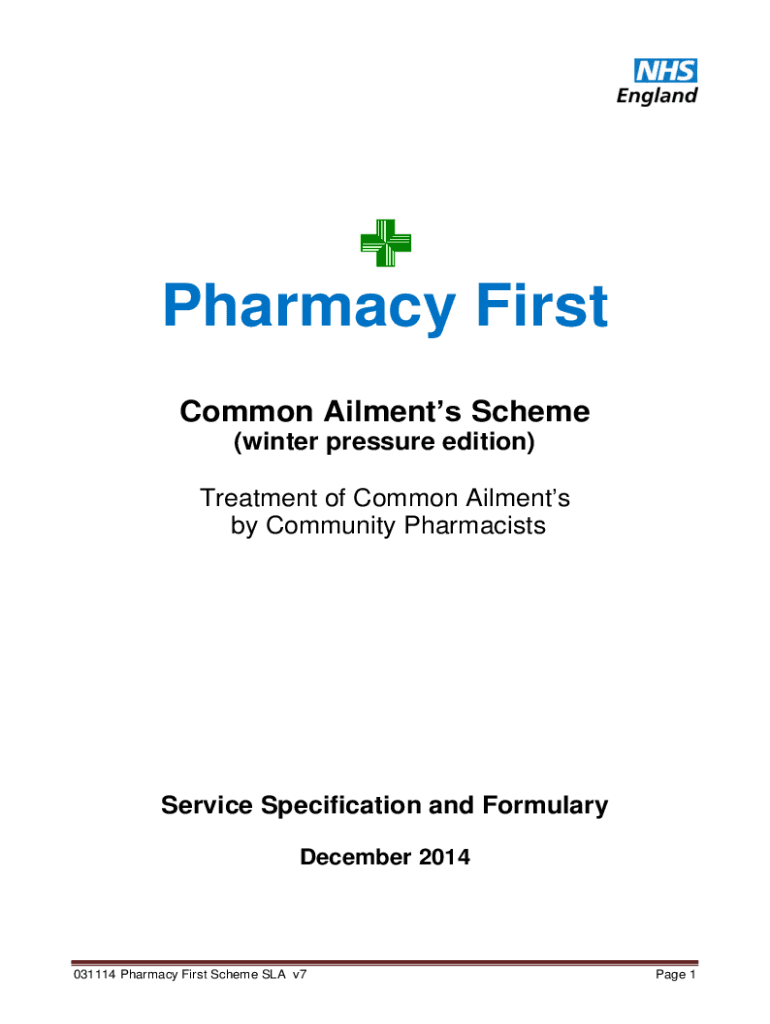 Pharmacy First Common Ailments Scheme (winter pressure edition) Treatment of Common Ailments by Community PharmacistsService Specification and Formulary December 2014031114 Pharmacy First Scheme SLA
