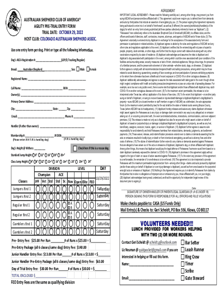 How to fill out all breed agility trial?