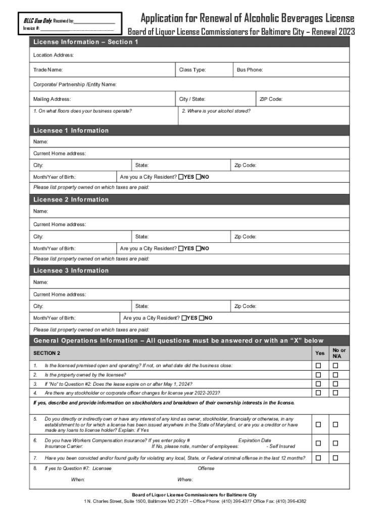Get the free BLLC Renewal Application - Baltimore City Liquor Board