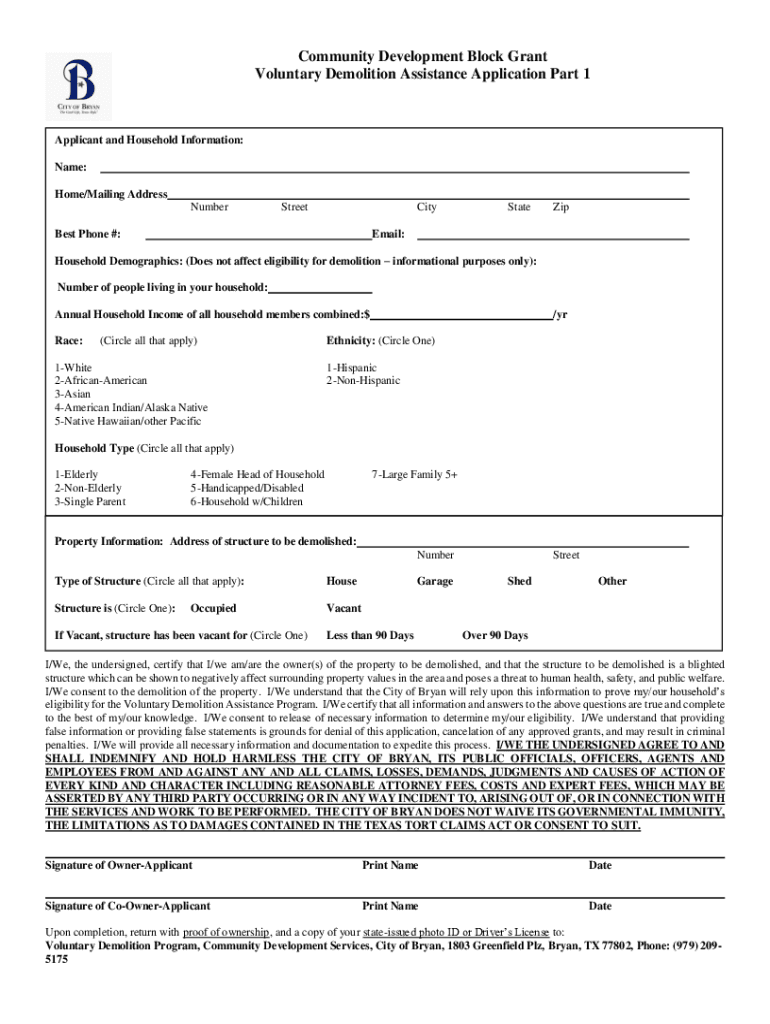 Get the free Community Development Block Grant Voluntary Demolition ...