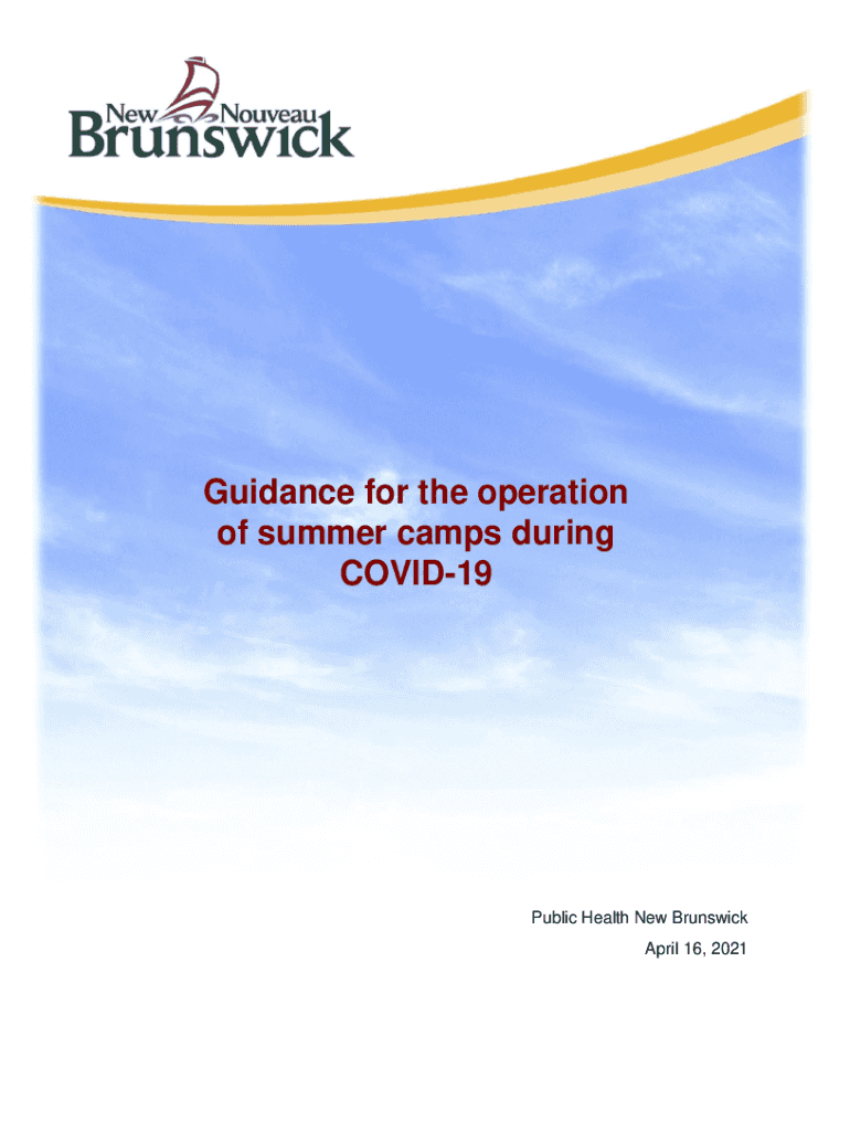Guidance for the operation of summer camps during COVID19Public Health New Brunswick April 16, 2021Guidance for the operation of summer camps during COVID-19 During the recovery phase of the COVID-19